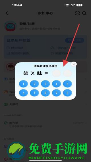2、点击后,会弹出验证家长身份的信息,输入相对应的答案即可。