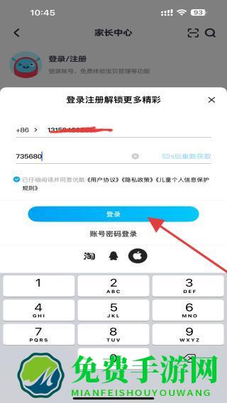 3、在登录页面,输入登录的手机号并获取验证码。