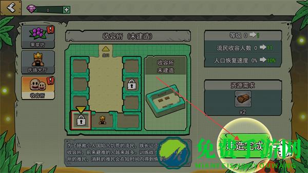 1、点击建造按钮,开启建筑建造流程,如建造收容所。