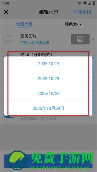 2、在编辑水印页面中,找到时间日期格式选项并点击。