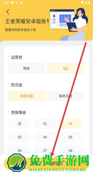 4、在王者荣耀安卓版账号估价页面选择运营商、防沉迷状态、贵族等级等信息后,点击“选好了,一键估价”,完成账号估价操作。