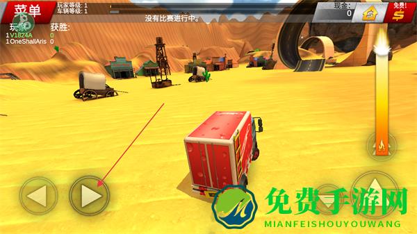 1、在沙漠场景中,通过左侧按键控制车辆方向,右侧按键控制加速,驾驶车辆探索。