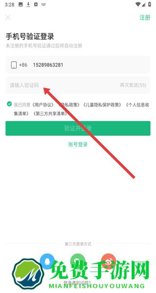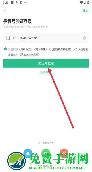 3、在跳转到手机号验证登录页面,可在输入框中填写完手机号后点击验证并登录按钮。