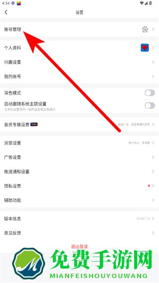 3、在设置界面中,点击账号管理选项,进入账号管理界面。