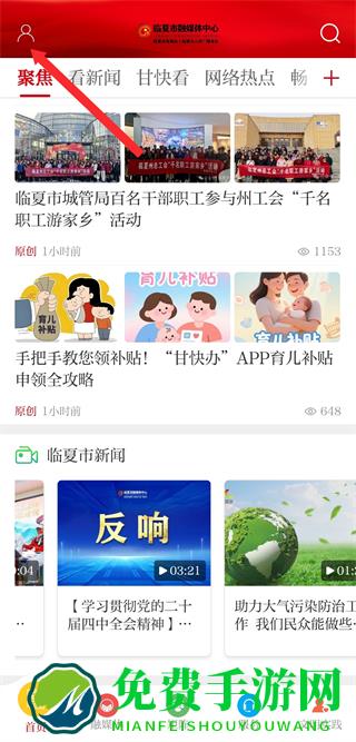 1、打开新临夏APP,点击页面左上角的个人图标,进入个人页面。