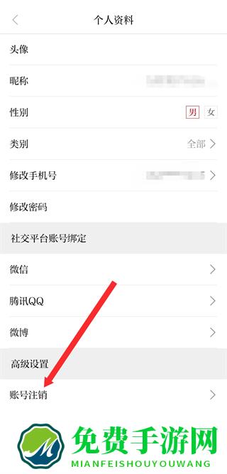 4、在个人资料的界面,找到账号注销选项,按照提示完成账号注销操作。