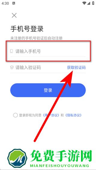 4、输入验证码,勾选用户协议后,点击登录,完成账号登录。