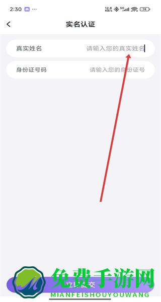 2、在实名认证界面输入真实姓名后,点击立即提交按钮。