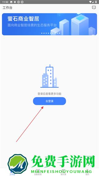 1、启动萤石商业智居APP,进入首页点击去登录的按钮。