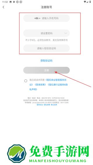 4、输入手机号、密码以及验证码后,点击注册即可完成注册。