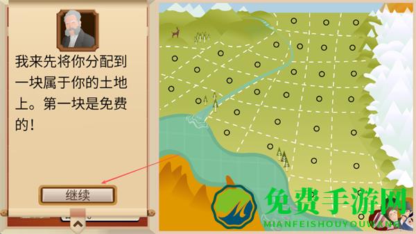 1、首先会获得一块免费土地,点击继续进入游戏。