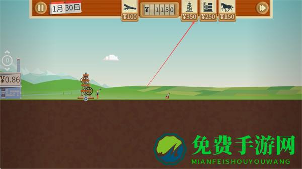 3、找到石油区域后,可花费资金建造油井如画面中的钻井设施来开采石油。