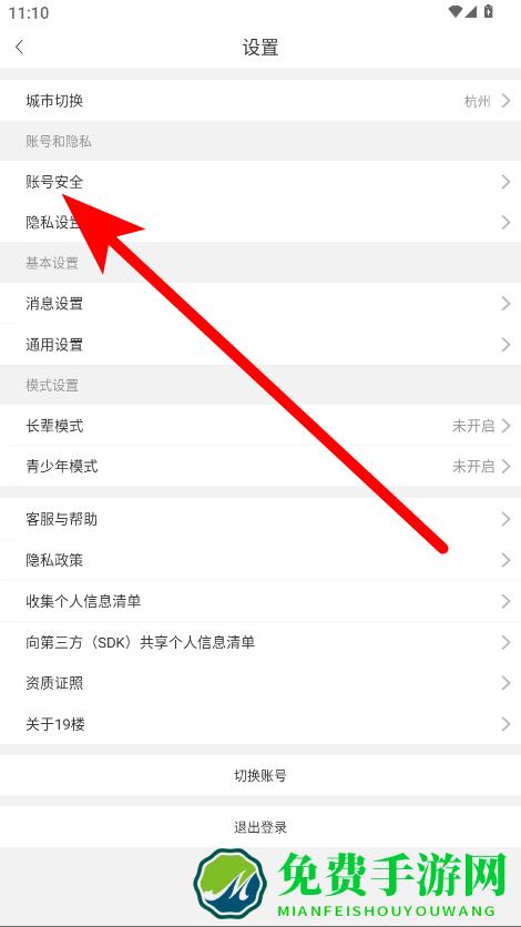 3、在设置界面里,点击账号安全选项,进入账号安全设置页面。