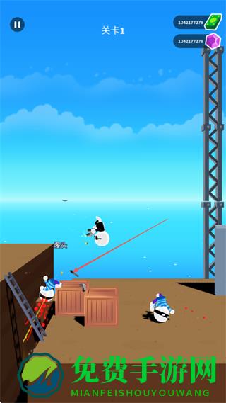 1、在关卡1中,操控神枪手移动至合适位置,瞄准敌方目标。