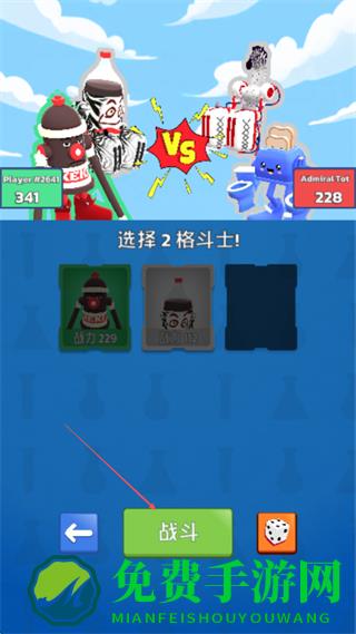 2、选择2个格斗士,点击战斗进入对战。