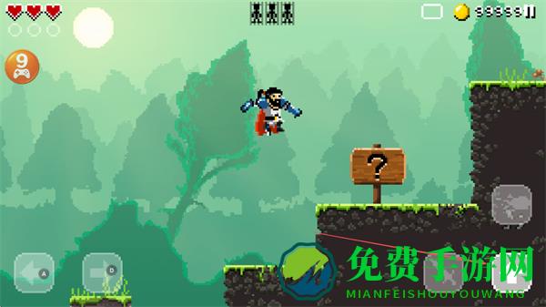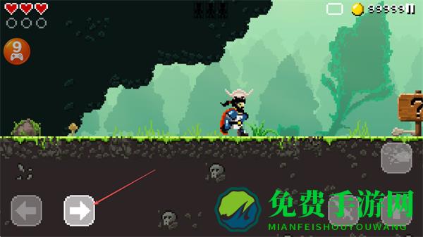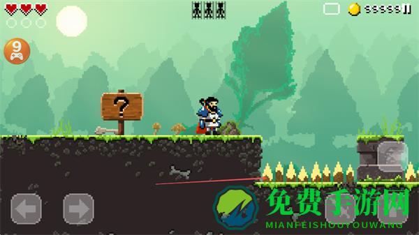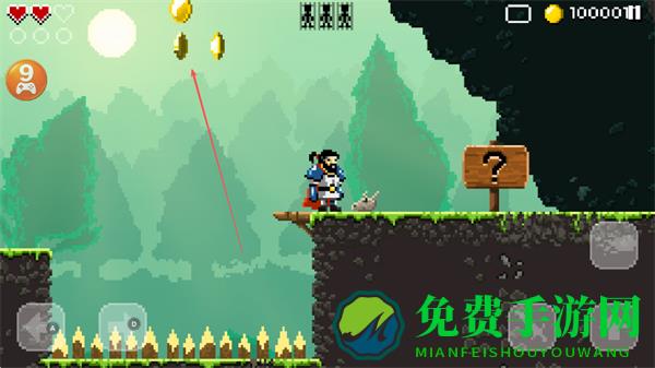1、操控勇士在像素场景中移动,通过左右按键行走,探索森林地形,收集金币。