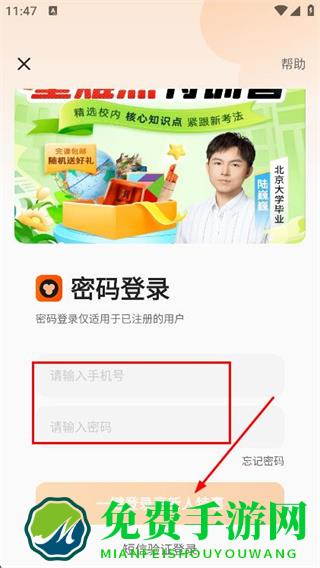 4、填写手机号和密码,点击一键登录享新人特惠,即可完成账号登录。