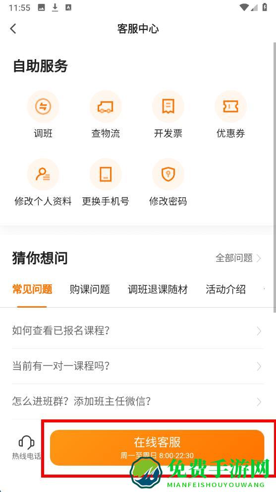 3、在客服中心界面中点击下方的在线客服的按钮进入与客服的对话界面。