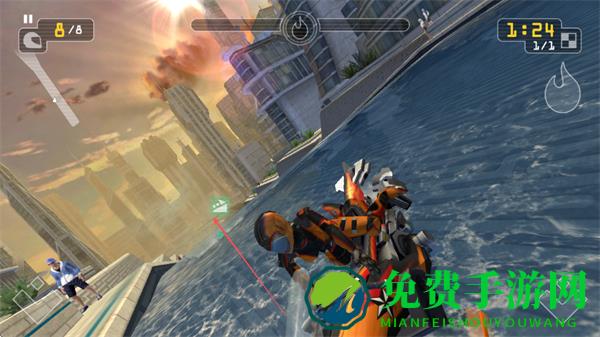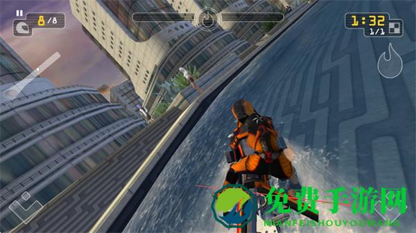 1、操控快艇在城市水道中行驶,利用左右按键调整方向,在规定时间内完成赛程。