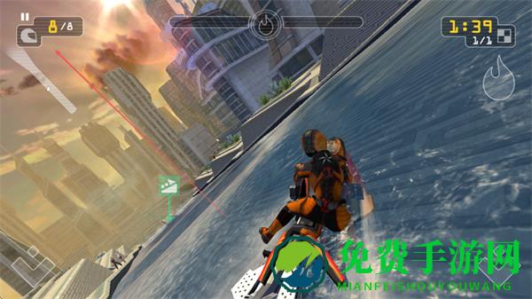 3、驾驶快艇在水面快速移动,调整角度,保持速度,向终点冲刺。
