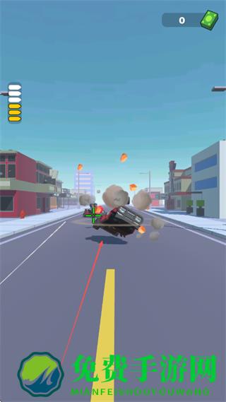 1、操控车辆在公路上行驶,撞击敌人车辆,使其爆炸,积累分数。
