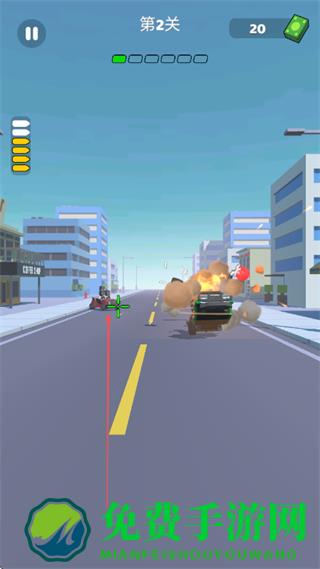 2、在第2关中,瞄准敌人车辆进行撞击,消灭敌人,同时躲避攻击。