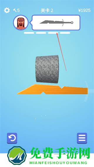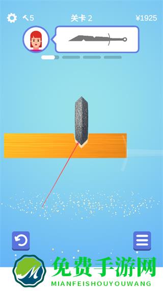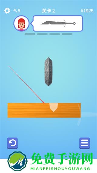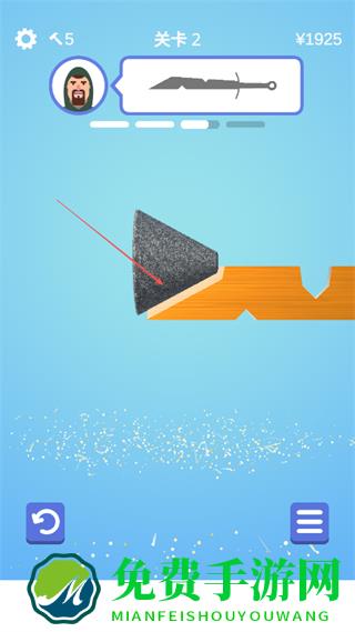 1、在关卡2中,根据上方剑的形状提示,操控砂轮对准橙色木块的缺口,开始打磨塑形。