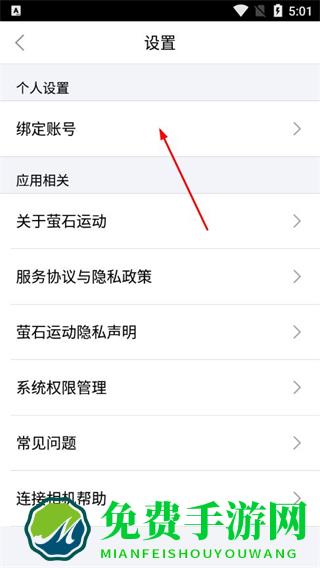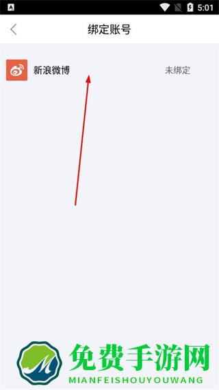 2、在设置页面,点击绑定账号选项。