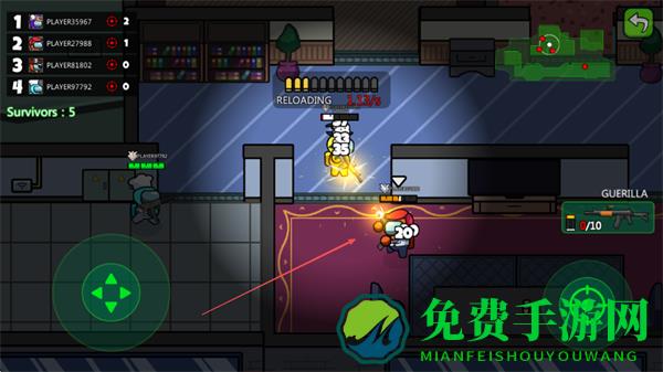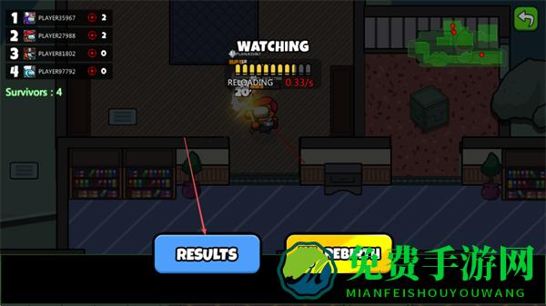 3、使用武器攻击红色角色,注意换弹时间,消灭敌人提升排名,减少存活人数。
