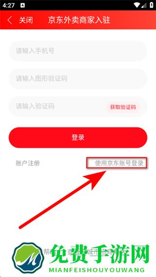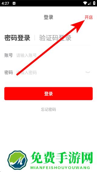 1、进入京东秒送软件的登录页面,点击右上角开店按钮。