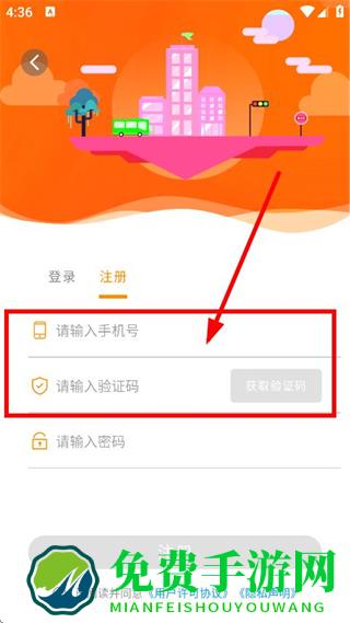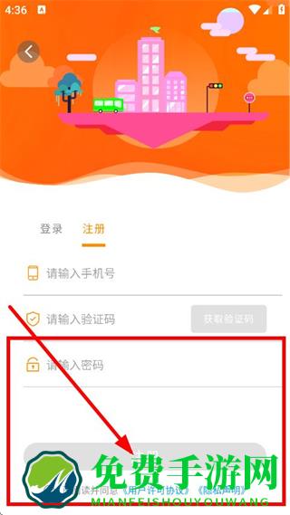 4、输入密码,同意相关协议后,点击注册,完成账号注册操作。