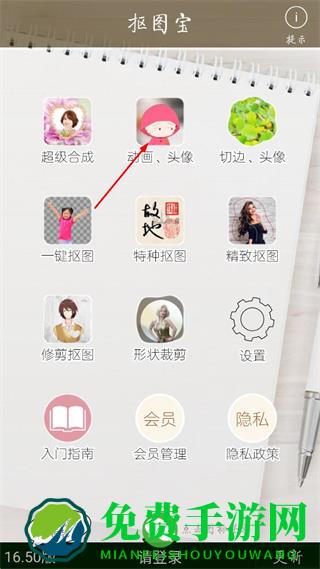 1、打开抠图宝APP主界面,点击动画、头像选项进入动画头像制作页面。