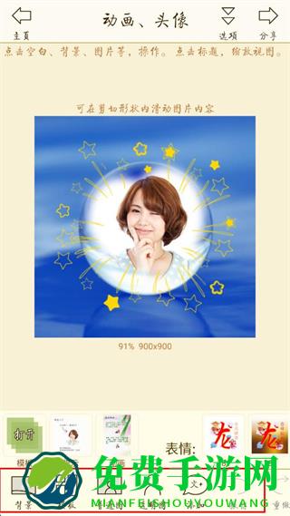 2、在动画头像制作页面,利用背景、模板等功能制作动画头像。