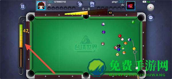 2、进入对局后,通过滑动右侧标尺调整击球力度,力度大小会影响击球后的速度与目标球的移动距离,需根据目标球与袋口的距离合理调整。