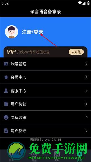 1、打开录音语音备忘录APP,点击底部我的选项进入个人页面。