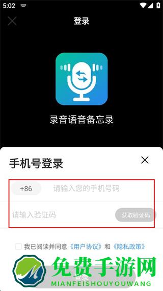 3、在登录界面,输入手机号码,获取并输入验证码。