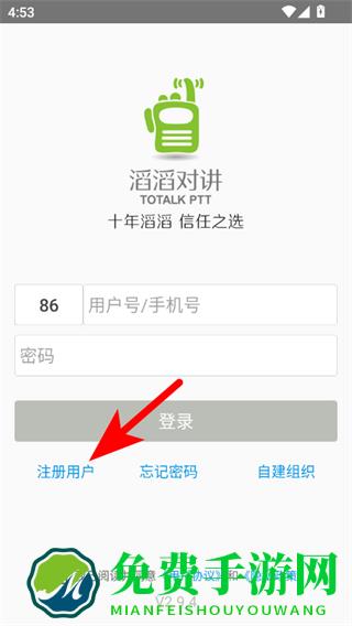 1、打开滔滔对讲APP,点击注册用户,进入验证手机号页面。