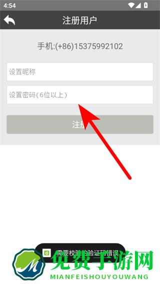 4、在注册用户页面设置昵称和密码6位以上,即可完成滔滔对讲APP的账号注册流程。