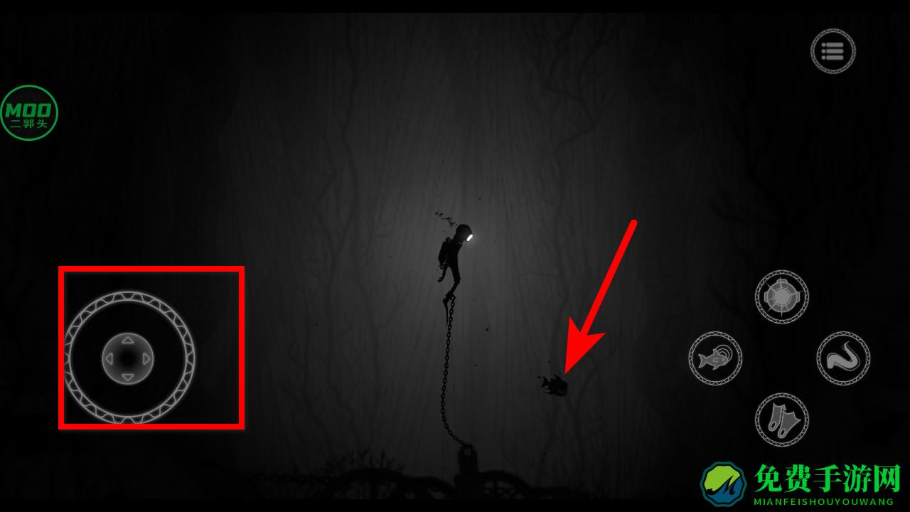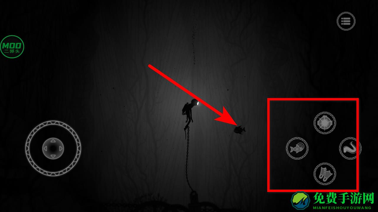 4、结合右侧其他功能按钮如鱼形、脚蹼形等,合理切换能力,探索海底场景,完成游戏任务。