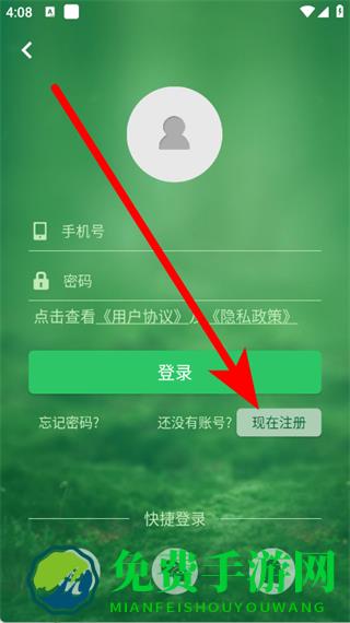 3、在登录注册页面,点击现在注册,进入注册页面。