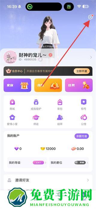 2、在个人页面点击右上角设置图标,进入包含账号、隐私等配置的设置页面。