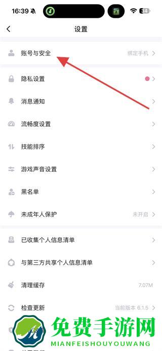 3、在设置页面点击账号与安全,进入管理账号安全相关功能的页面。