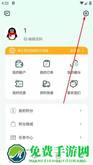 2、在我的页面中,找到并点击设置图标,进入设置页面。