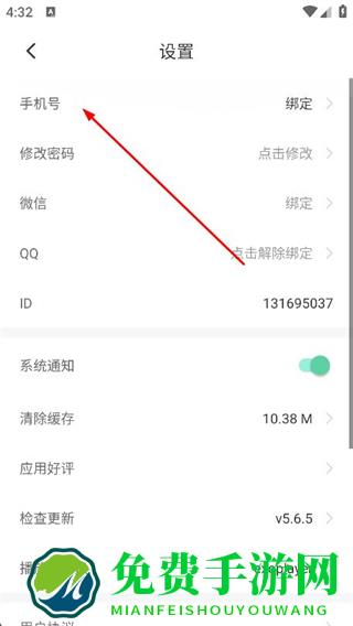 3、进入设置页面后,找到并点击上方的手机号选项。