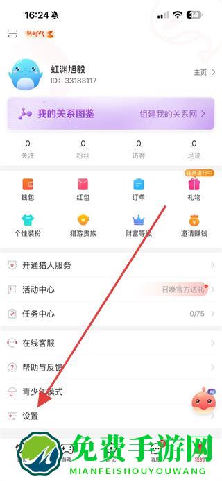 1、打开猎游APP,点击右下角我的,进入展示个人功能与信息的页面。