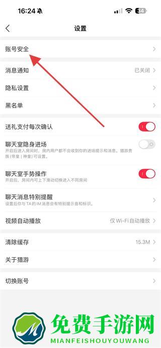 4、在账号安全页面中找到注销账号选项并点击,按照页面提示完成验证等操作即可注销猎游账号。