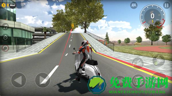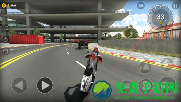 3、关注右上角时速表,控制摩托车速度,在弯道处减速,避免碰撞车辆和障碍物。