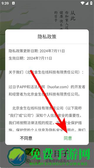 1、打开过日子,在隐私政策弹窗中点击同意。