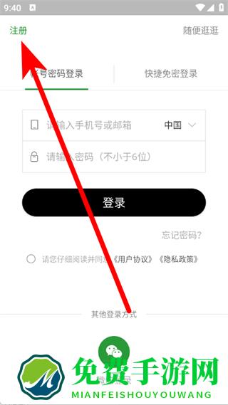 2、在登录页面,点击注册,进入注册页面。