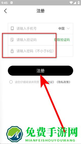 4、在输入框中,输入验证码,设置好密码后,点击注册。